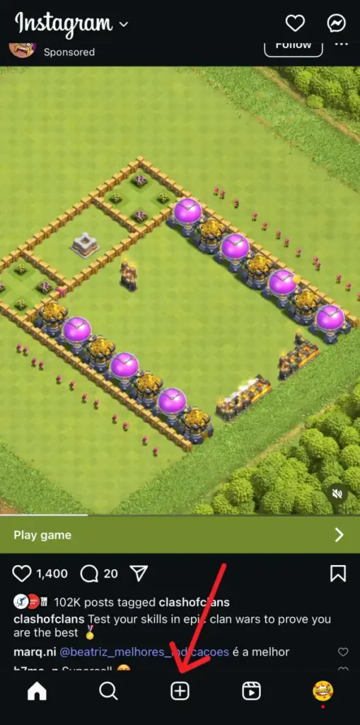 Step 2: Tap the “+” icon and select “Reel” from the options.