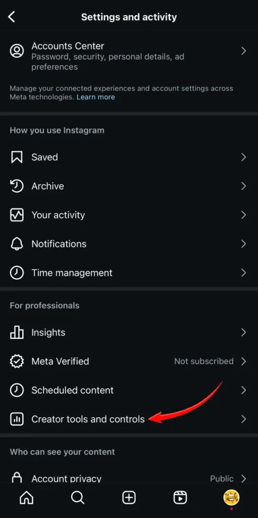 Step 3: Tap on Settings and privacy or Creator Tools and Controls as per your account