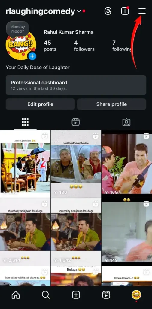 Step 2: Tap on the Menu (☰) icon in the top right corner to go to your profile