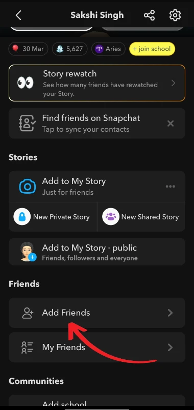 Step 3: Scroll down Friends and Add Friends to see friends in Quick Add